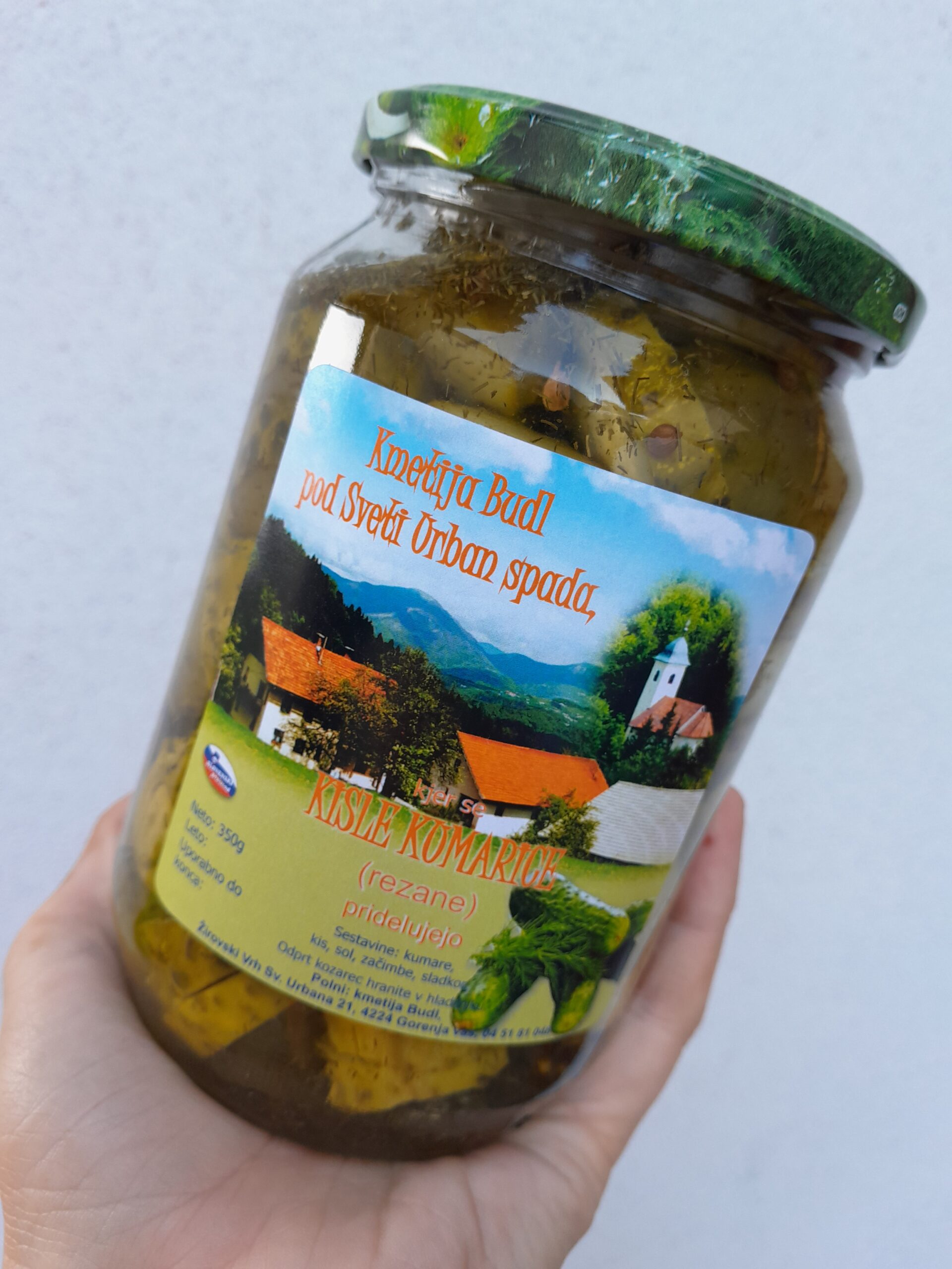 Sestavine: kisle kumarice,mešanica začimb za kumarice (gorčica,koper,poper), sol, sladkor, voda, kis za vlaganje